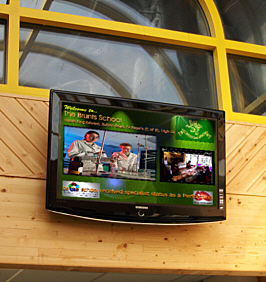 and attention grabbing way. Video, sound, live web feeds, slide shows and